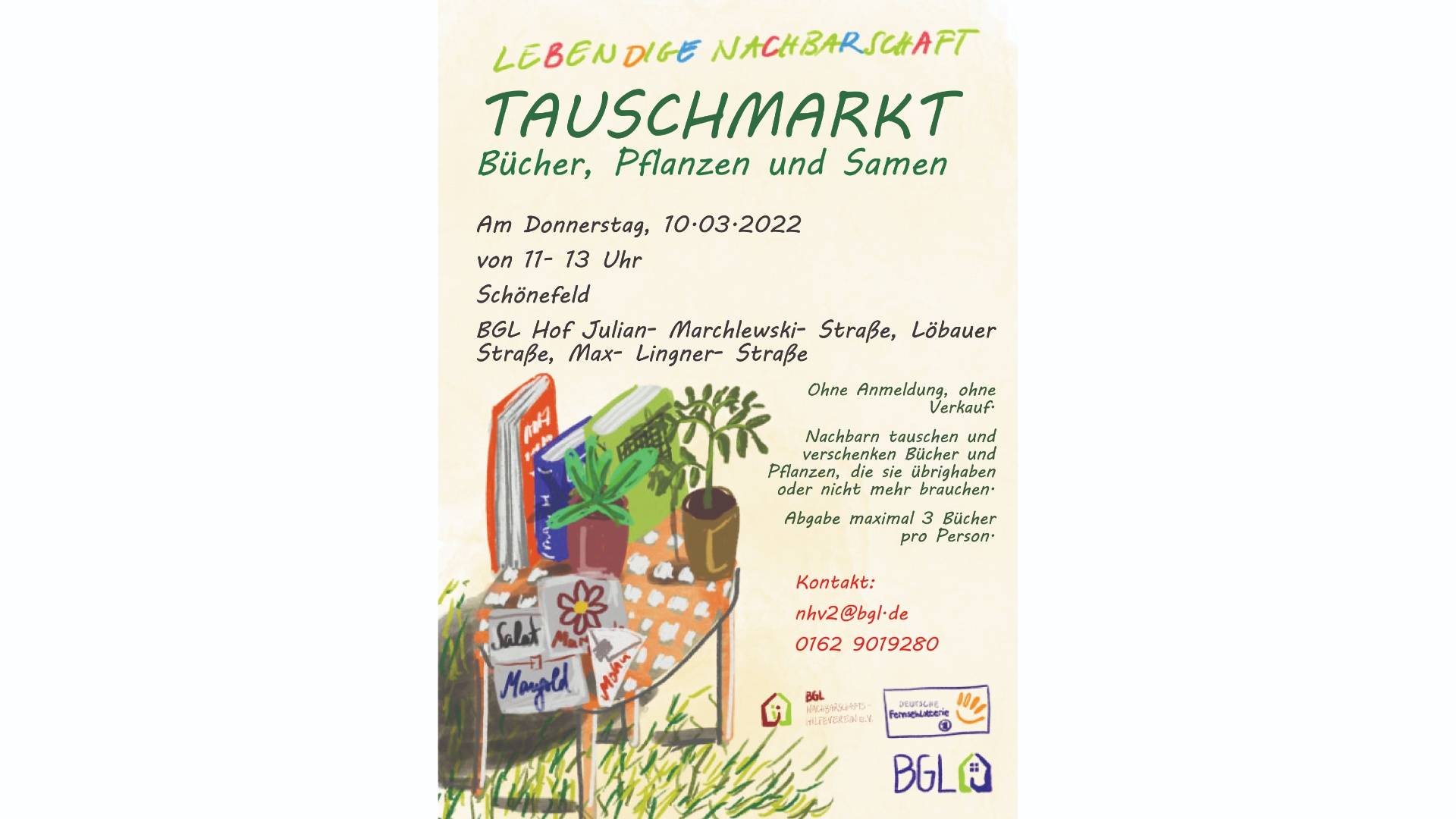 Die Bücher, die auf dem weihnachtlichen Gabentisch lagen, sind ausgelesen? Die Samen für die diesjährige Garten-Saison sind sortiert aber da fehlt noch was oder es ist viel übrig? Die Zimmerpflanzen sind umgetopft aber für die Ableger ist kein Platz mehr in der Wohnung oder Ihr braucht Pflanzennachschub oder Abwechslung? Dafür organisieren wir wieder unsere Bücher-, Samen- und Pflanzentauschbörsen.