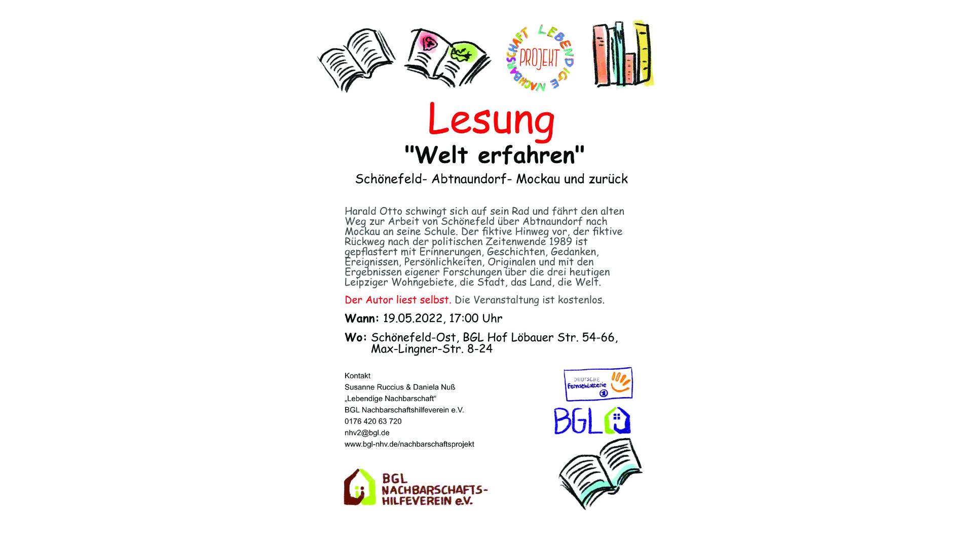 Achtung; der Leseort wurde umverlegt, der Autor liest auf dem BGL Hof in der Bertold-Brecht-Straße.