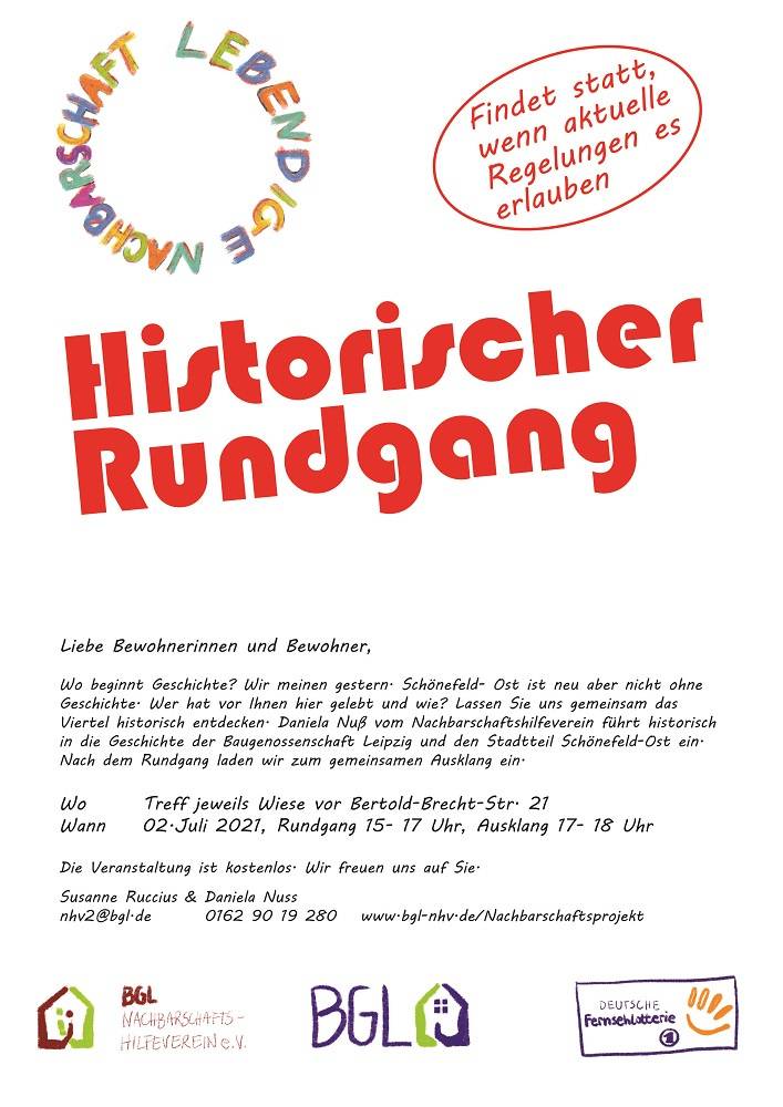 Schönefeld-Ost hat zwar eine junge Geschichte, doch auch die lohnt es zu entdecken. Wer hat hier gelebt und wie? Lassen Sie uns gemeinsam das Viertel historisch entdecken. Erzählen wir uns gegenseitig aus dem Alltagsleben in der jüngeren Vergangenheit. Wie war es in den 1960ern hier endlich eine Wohnung zu bekommen, wie sah es hier aus, was ist verschwunden, was kam hinzu?