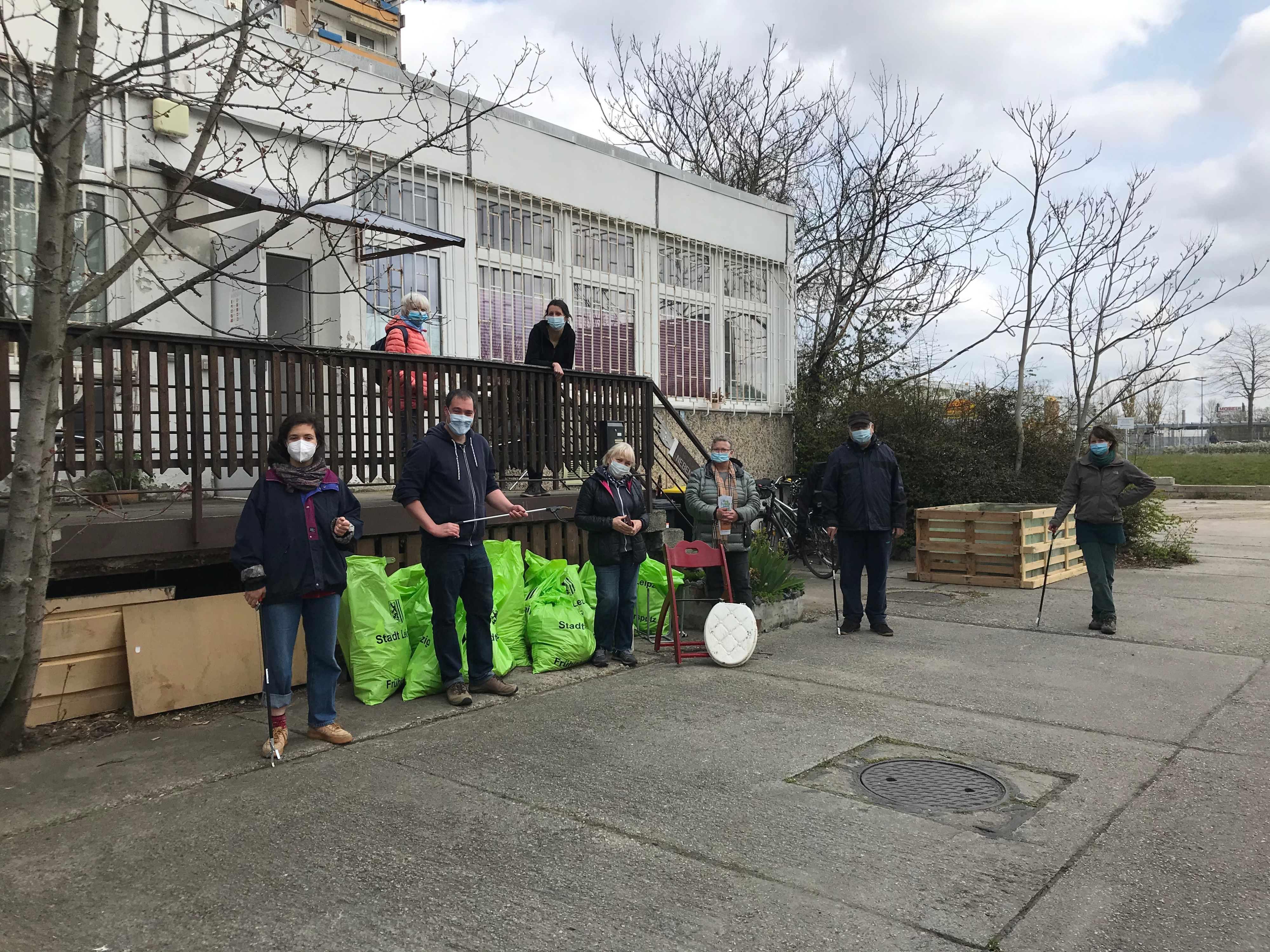 Im WK 2 hatte das Nachbarschaftszentrum nebenan Mittendrin die Koordination der Freiwilligen übernommen, die rege Müll rund um das Zentrum sammelten und zum Ende der Aktion eine beachtliche Reihe von Müllsäcken gefüllt hatte.
