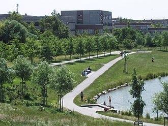 Ein Jugendtreff und ein Kinderspielplatz vervollständigen das Naherholungsangebot des Bürgerparks für die 17.000 Einwohner der Plattenbausiedlung.